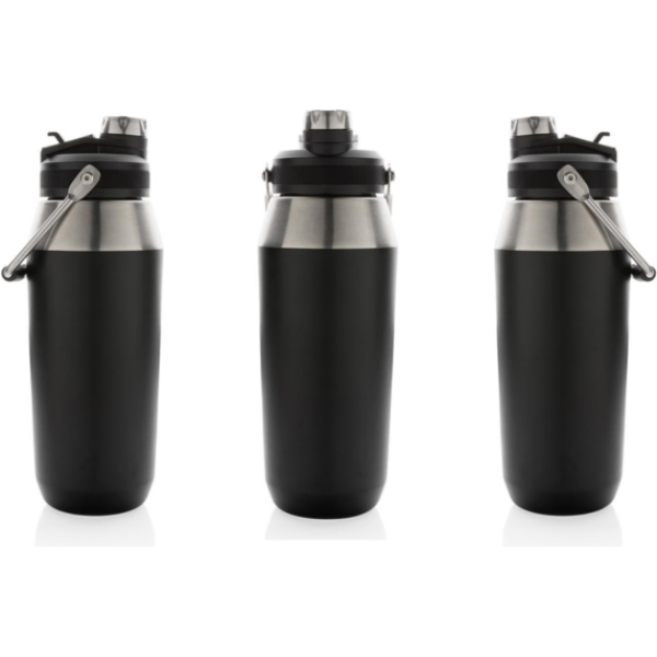 1L Vakuum StainlessSteel Flasche mit Dual-Deckel-Funktion, Schwarz