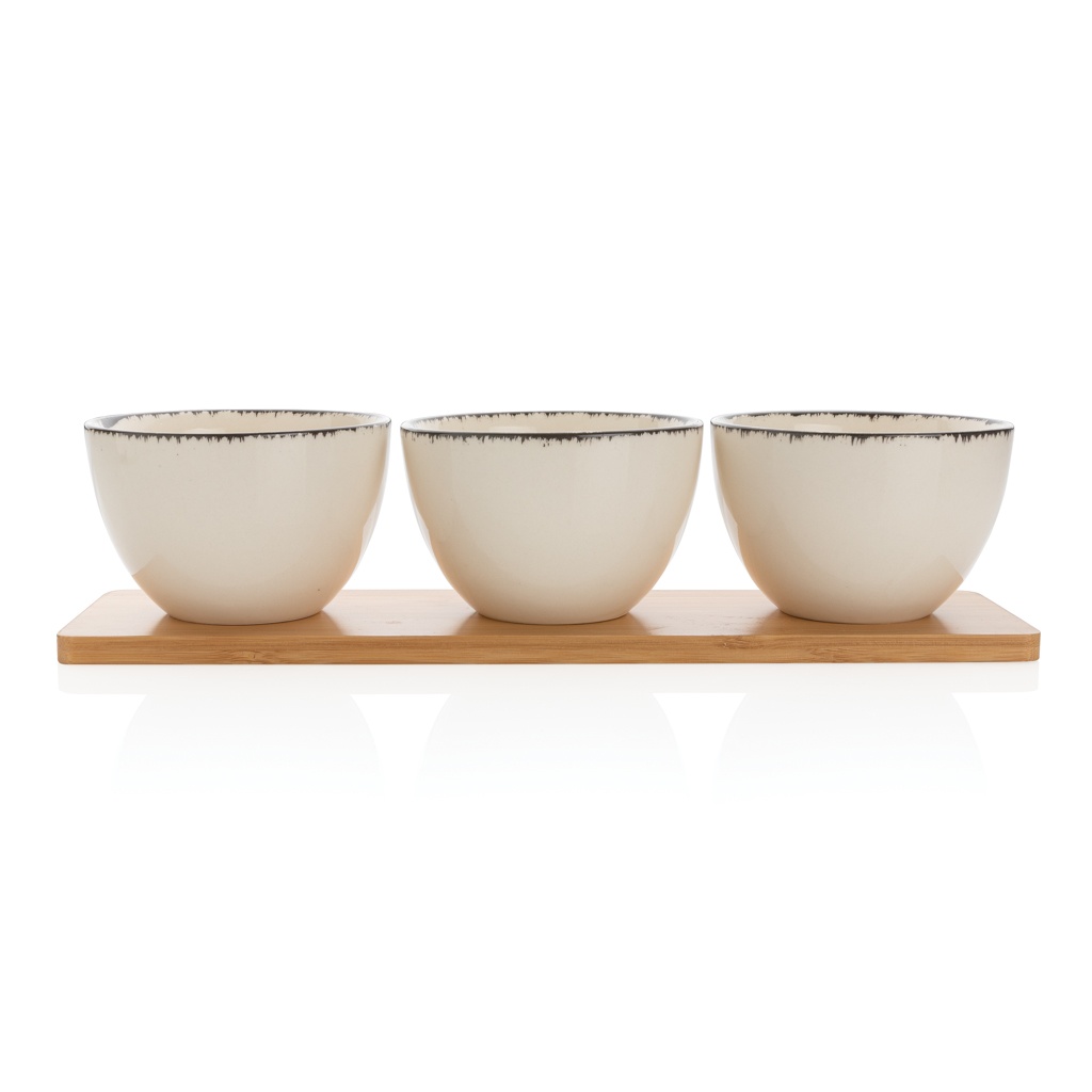 3-tlg. Ukiyo Servierschalen-Set mit Bambustablett