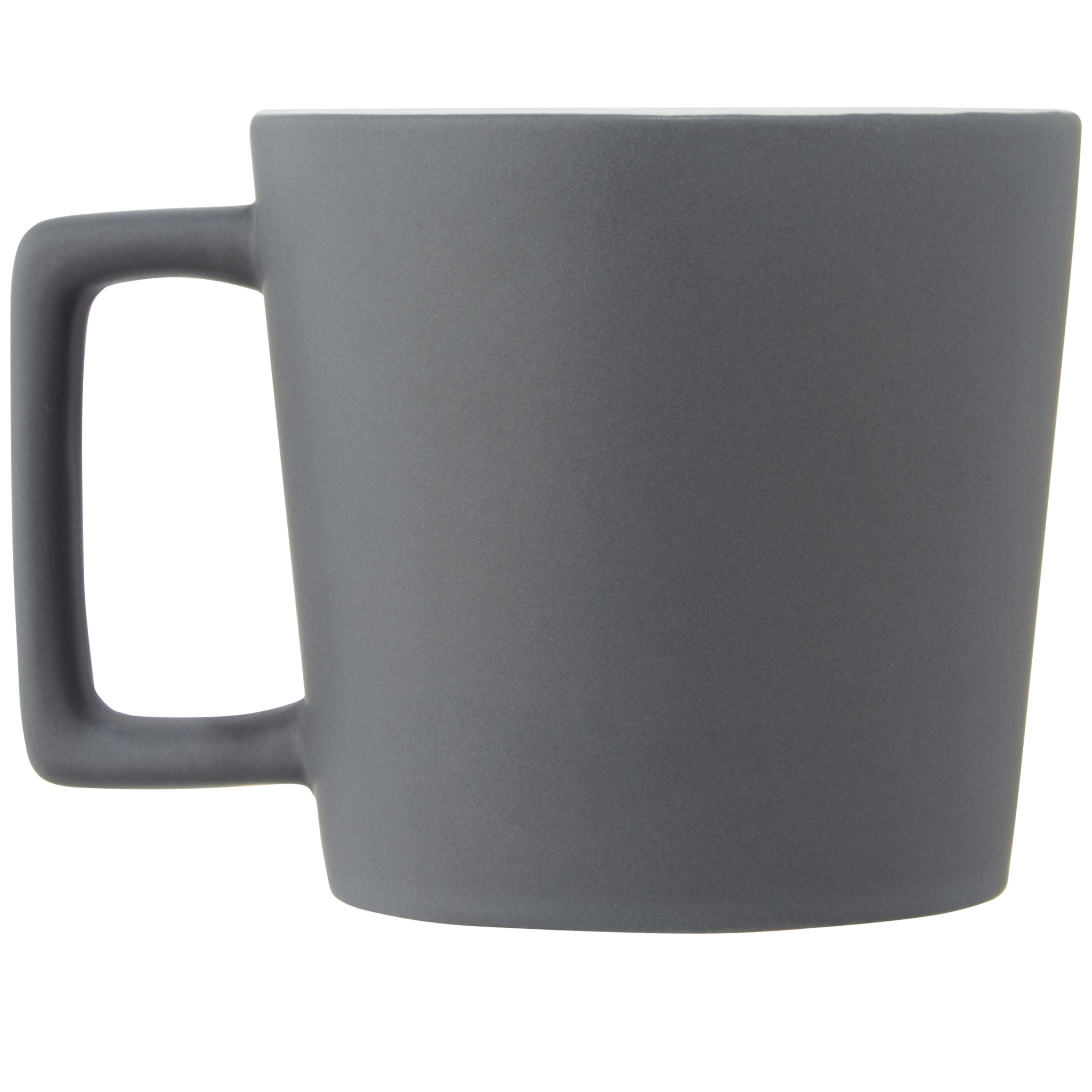 Keramiktasse mit modernem Design und matter Oberfläche. Das Fassungsvermögen beträgt 370 ml. Spülmaschinenfest für alle Werbeanbringungsmethoden. Verpackt in einer Geschenkbox aus Recyclingkarton.