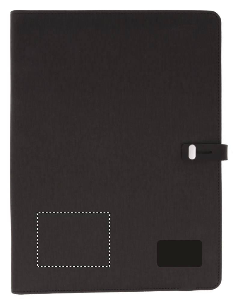 DIN A4 Portfolio mit Cover aus PU in Leinen-Optik. Magnetverschluss. Block mit 20 Blatt (40 Seiten) liniertem Papier. Inkl. 4000 mAh Powerbank und Mikro-USB-Kabel/Typ C. Smartphone- /Tablet Halterung. Kreditkarten Steckfächer. Stiftschlaufe. Mit schwarzer Aluminium Plakette für Ihr Logo.