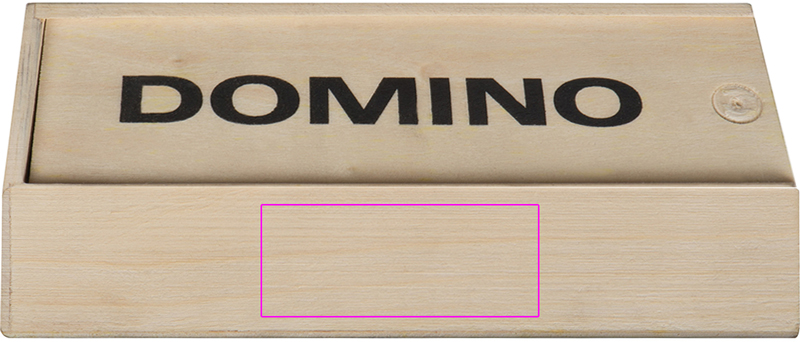 Dominospiel aus Holz. Ihre Werbung drucken wir auf die Frontklappe.