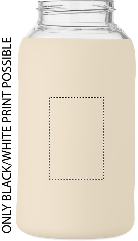 Flasche aus hochwertigem Borosilikatglas mit Silikonhülle. PP-Deckel mit Henkel. Füllmenge: 600 ml
