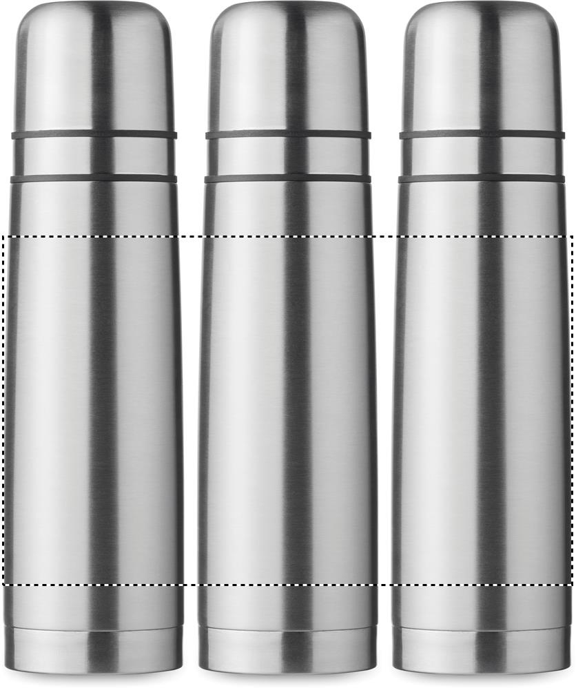 Set bestehend aus doppelwandiger Isolierflasche aus recyceltem Edelstahl (90% recycelter Edelstahl, 10% Edelstahl) sowie 2 Bechern (Innenwand PP) im Deckel. Füllmenge Flasche: 750 ml, Becher: 150ml und 125ml.