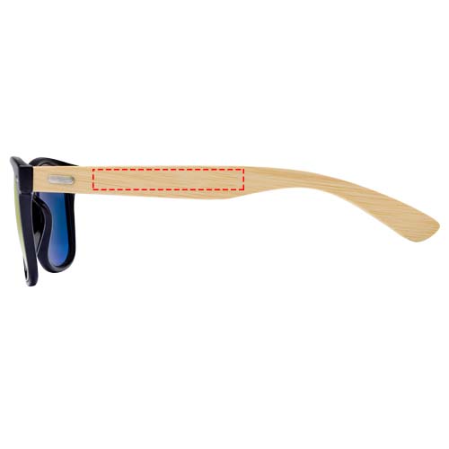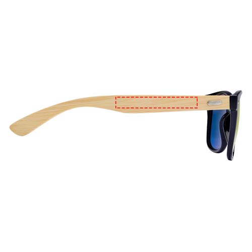 Stylische Sonnenbrille mit farbigen Gläsern und Bambusbügeln. Die UV-400-Gläser schützen vor schädlichen ultravioletten Strahlen. Erfüllt die europäische Sicherheitsnorm EN12312-1.