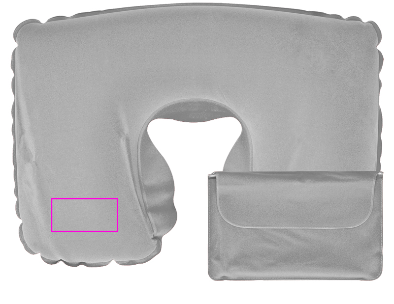 Lehnen Sie sich zurück! Aufblasbares Nackenkissen im Veloursdesign im praktischen Beutel. Ideal für entspanntes Reisen im Auto, Bus oder Flugzeug. Verpackt in einem einzelnen Veloursbeutel. Ihre Werbung platzieren wir auf einer Seite des Nackenkissens.