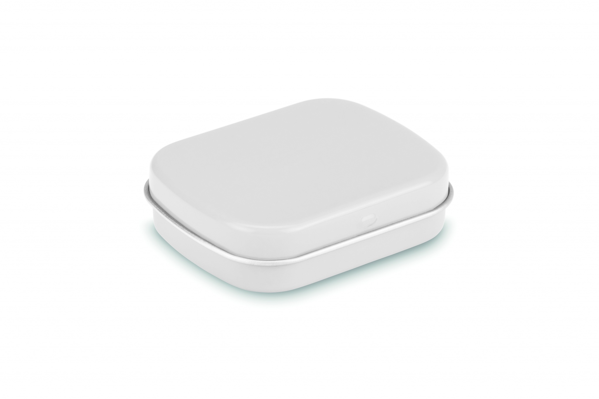 Praktische Dose mit Pfefferminz. Inhalt: ca. 25 g.