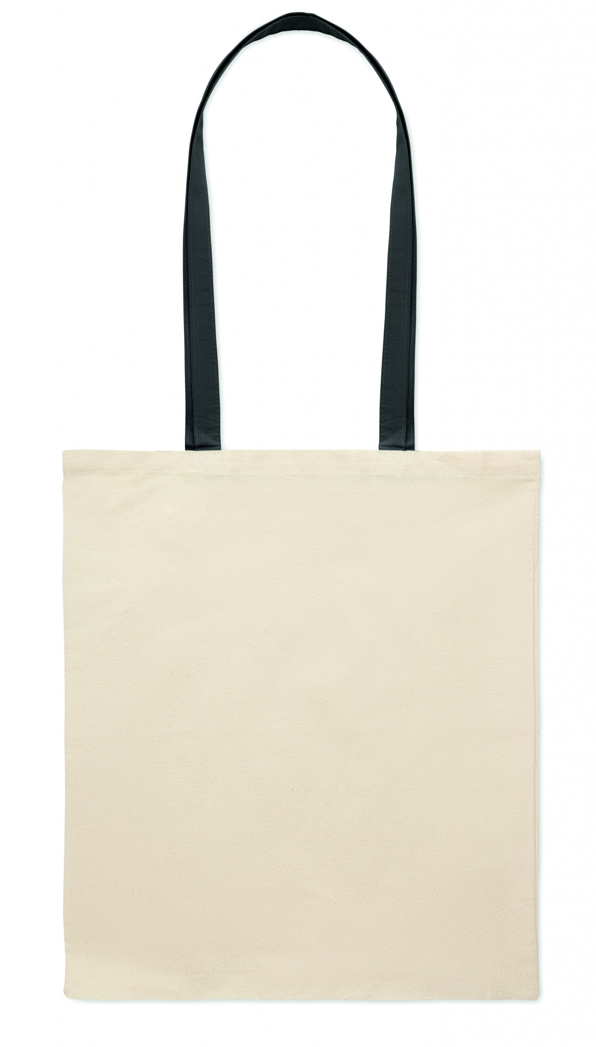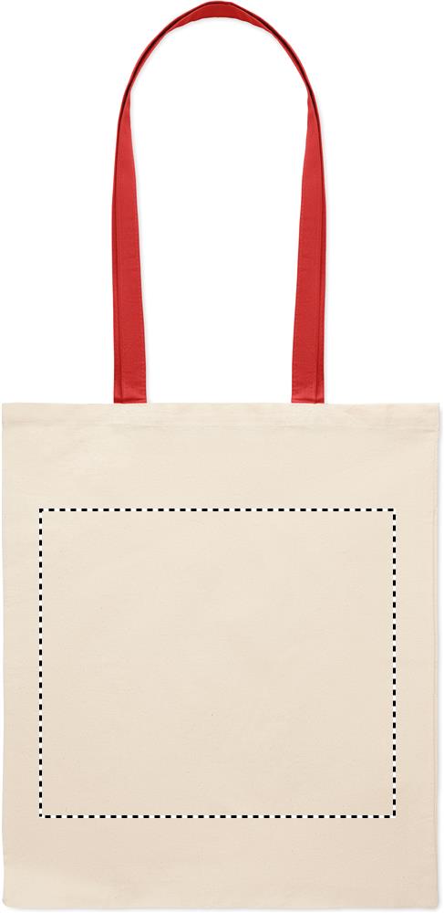 Cotton shopping bag with coloured long handles. 140 gr/m².
