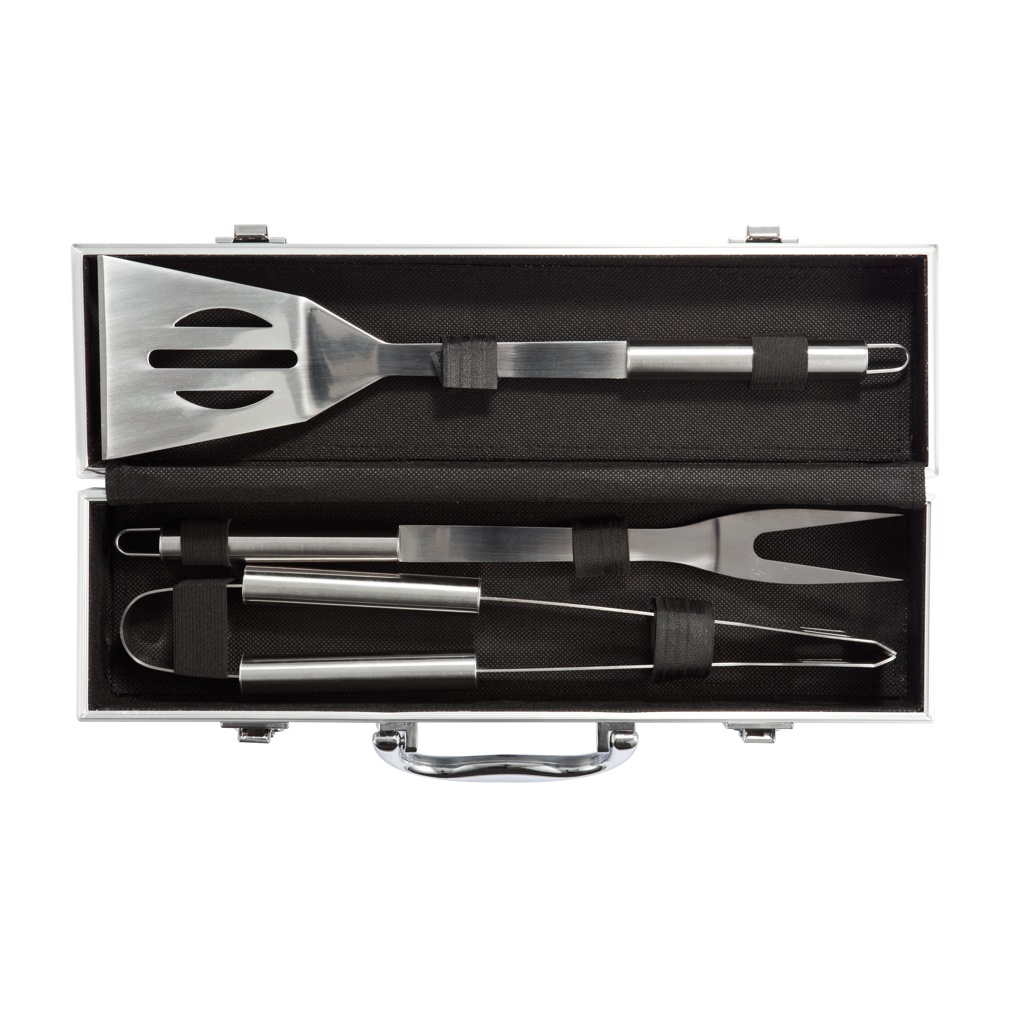 3 pcs barbecue set in aluminium box, silver