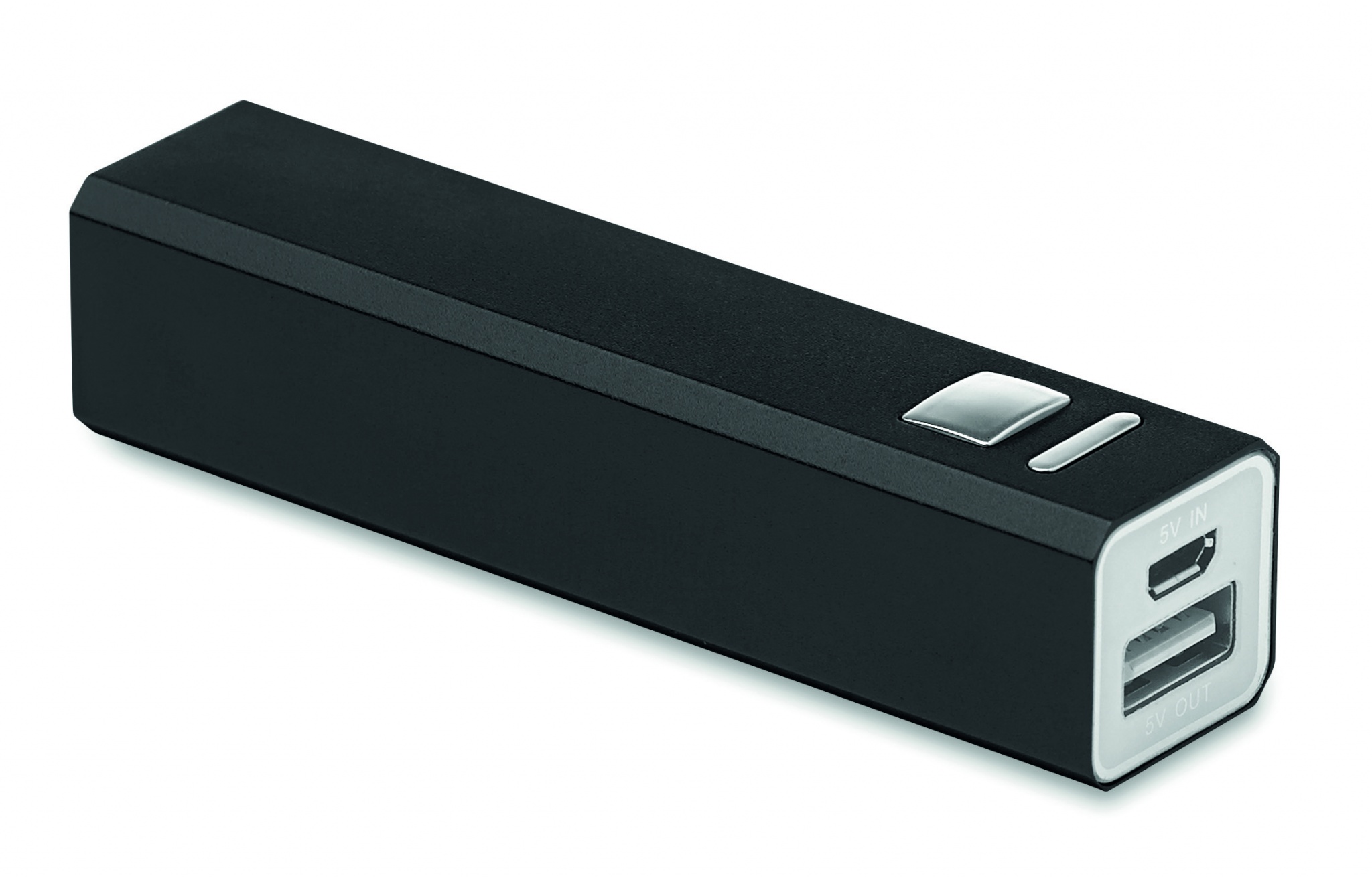 Power bank 2200 mAh in aluminium. Capacity for smartphone use, out put current DC5V/1A. Includes indicating light and USB cable with micro usb plug.
