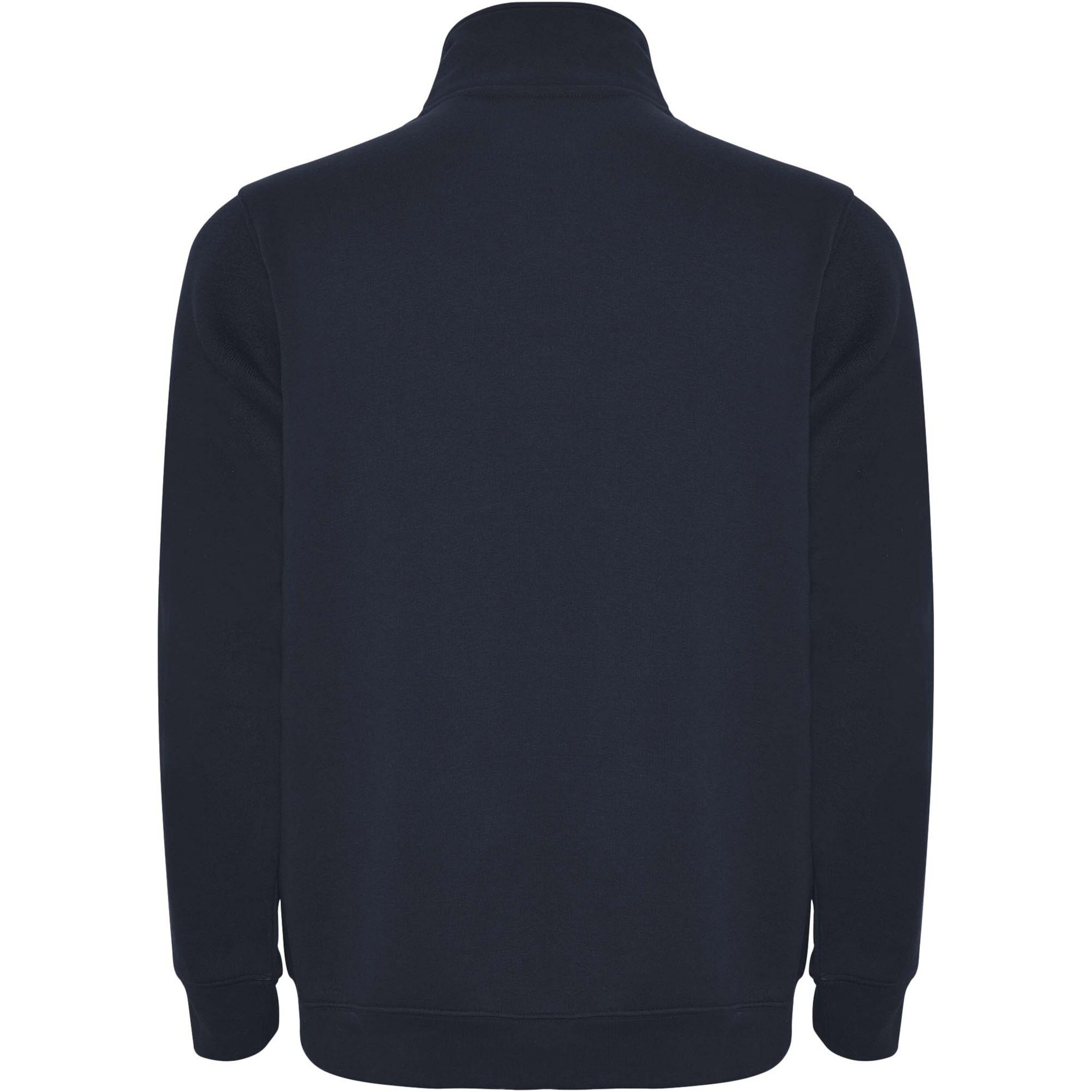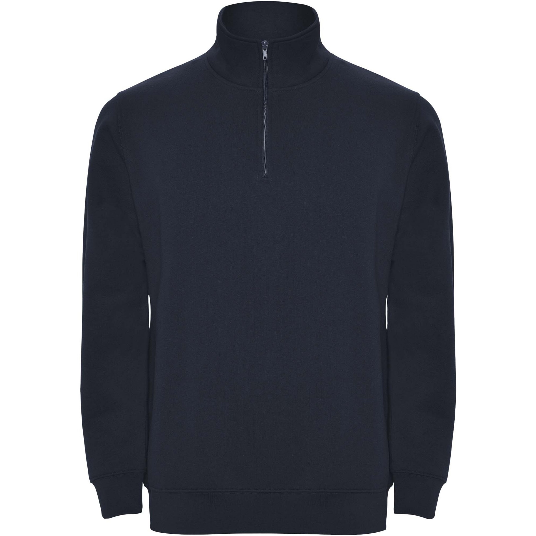 Sweatshirt with matching half zip and polo neck. Matching inner collar. Reinforced covered seams on inner collar. 1x1 ribbed cuffs and waist. The model is 185 cm and is wearing size M.
