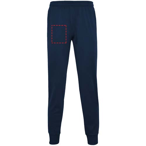 Trousers with adjustable elastic waistband with inner drawcord. Side pockets. Cuffs and zip on bottom leg. Removable label.