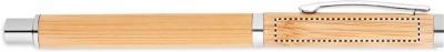 Bamboo barrel roller ball pen with stainless steel fittings. Blue gel ink. Bamboo is a natural product, there may be slight variations in colour and size per item, which can affect the final decoration outcome.