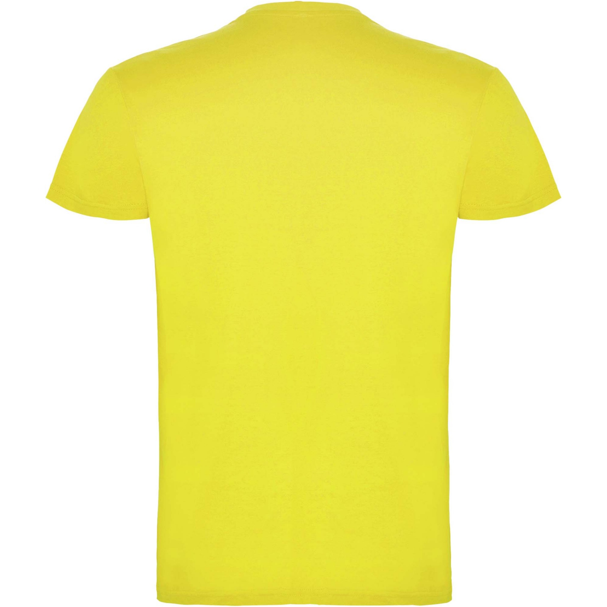 Short-sleeve t-shirt with double layer crew neck in elastane, made in tubular fabric for adults. Reinforced covered seams in collar. Removable label. The model is 190 cm and is wearing size L.