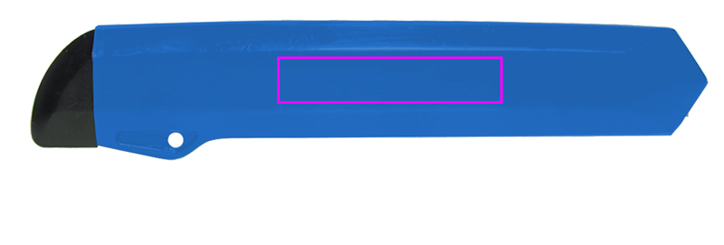Cardboard knife made of plastic with snap-off blade (seven blade parts). We print your logo on the closed part of the plastic case.