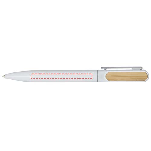 The Blanca ballpoint pen has an upper barrel made of recycled plastic with a coloured spray coating, and bamboo accessories on both sides. The lower part of the barrel is made of recycled aluminium with a coloured spray coating. Ink colour: Black. Writing length: 400 metres. Nib size: 1.0 mm.