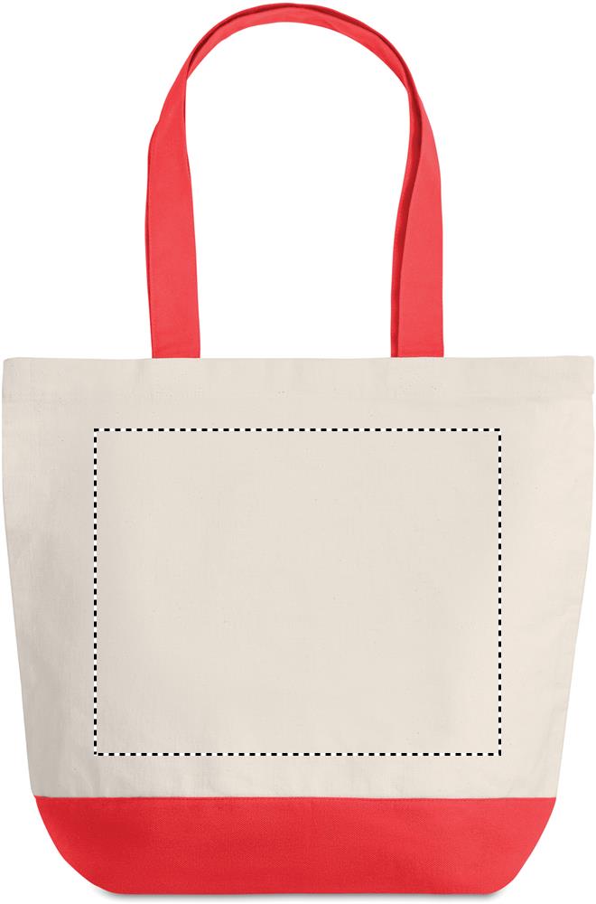 Canvas 280gr/m² shopping beach bag with coloured bottom detail and matching handles (inside pocket).