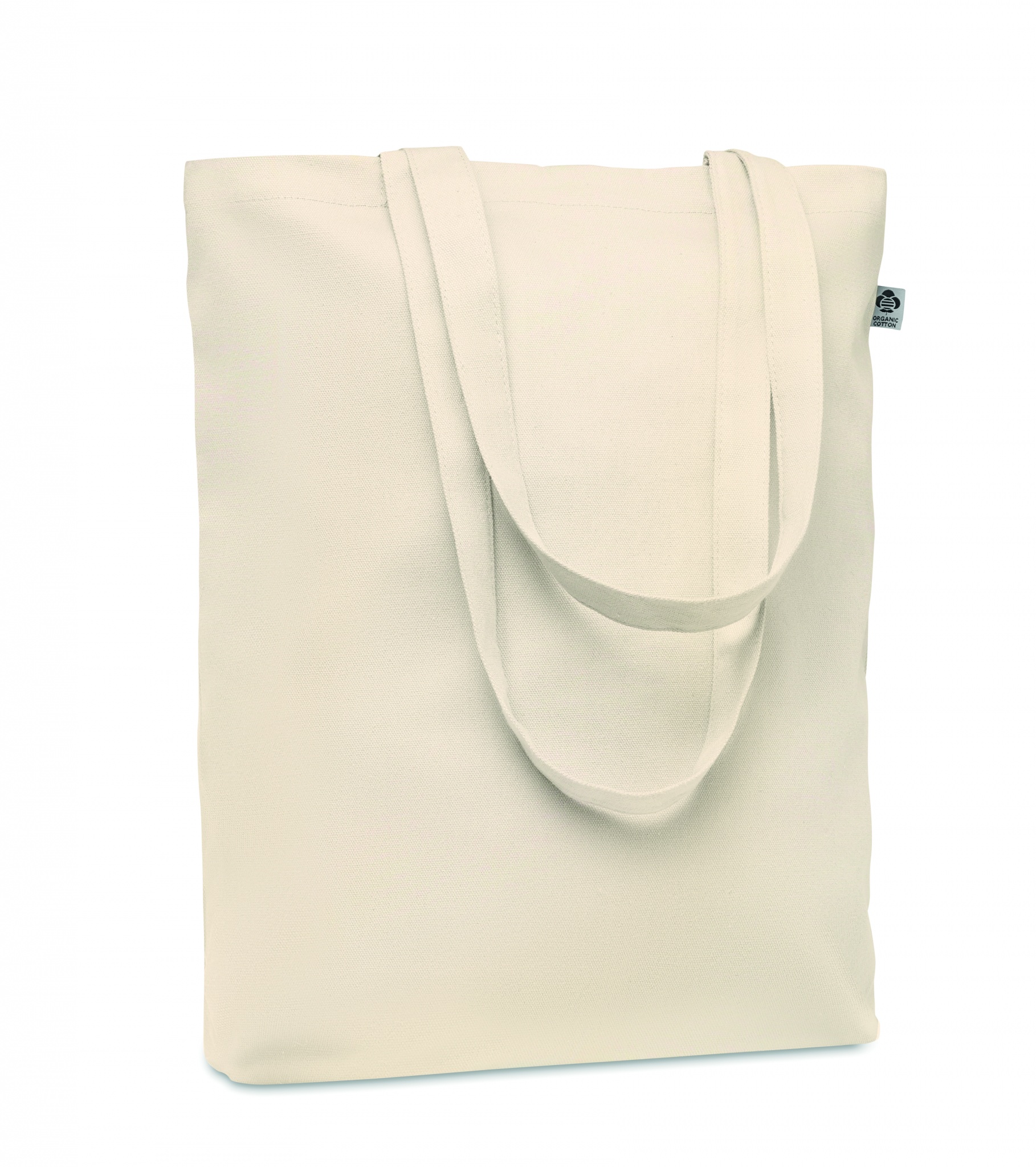 Organic canvas shopping bag with long handles and bottom gusset. 270 gr/m².