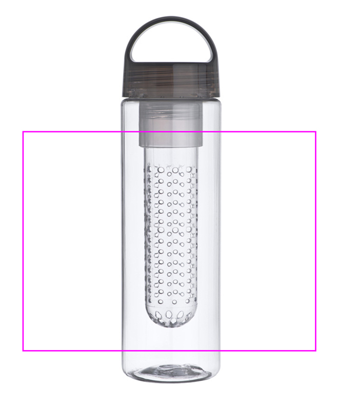 Plastic drinking bottle with infuser for (e.g.) fruits and 650ml capacity. We will print your logo on the bottle.