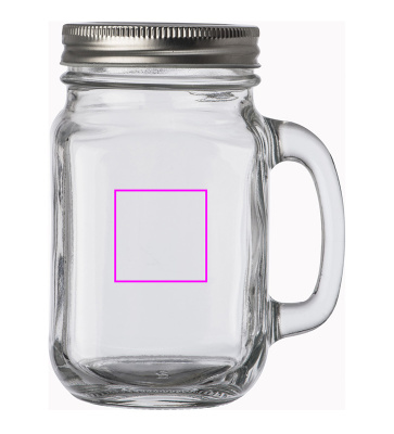 Glas jug (450 ml) with metal screw top, and straw hole (straw is not included). Your logo will be laser engraved on the screw top.