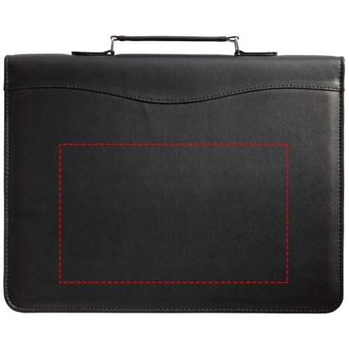 Portfolio with handle, zipper closure, ring binder, zipper pocket and document compartments. Includes 20 pages lined notepad. Pen and accessoires not included.