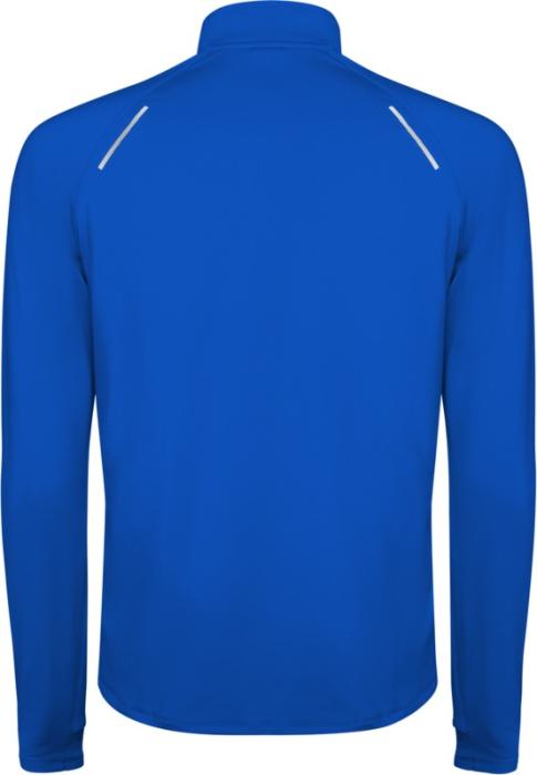 Long-sleeve technical raglan sweatshirt for men. Collar with a half zip inverted design featuring reflective details. Reinforced seam covers. Cuffs with thumb openings. Reflective details on the back. Back hem slightly longer than the front. Warm brushed inner fabric.