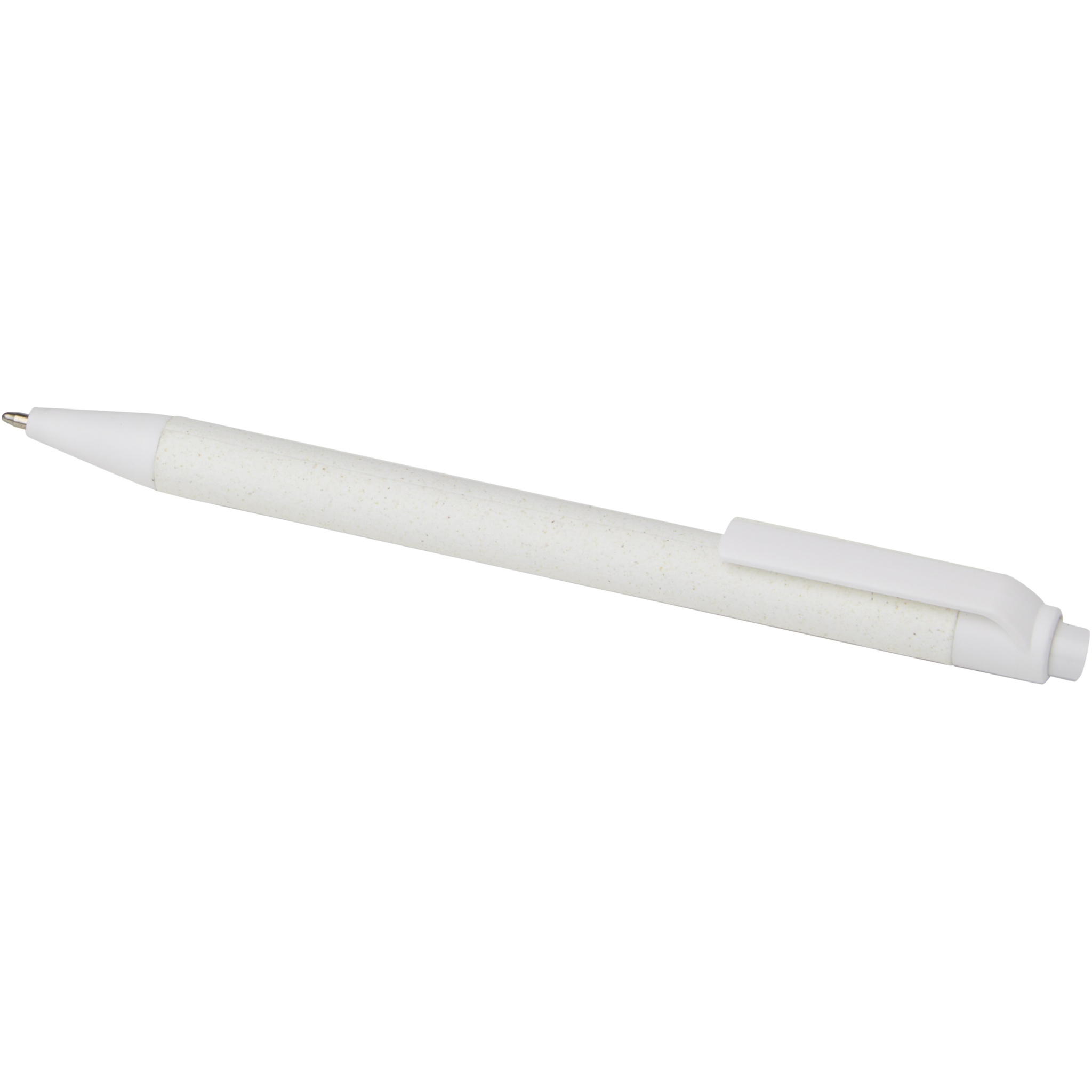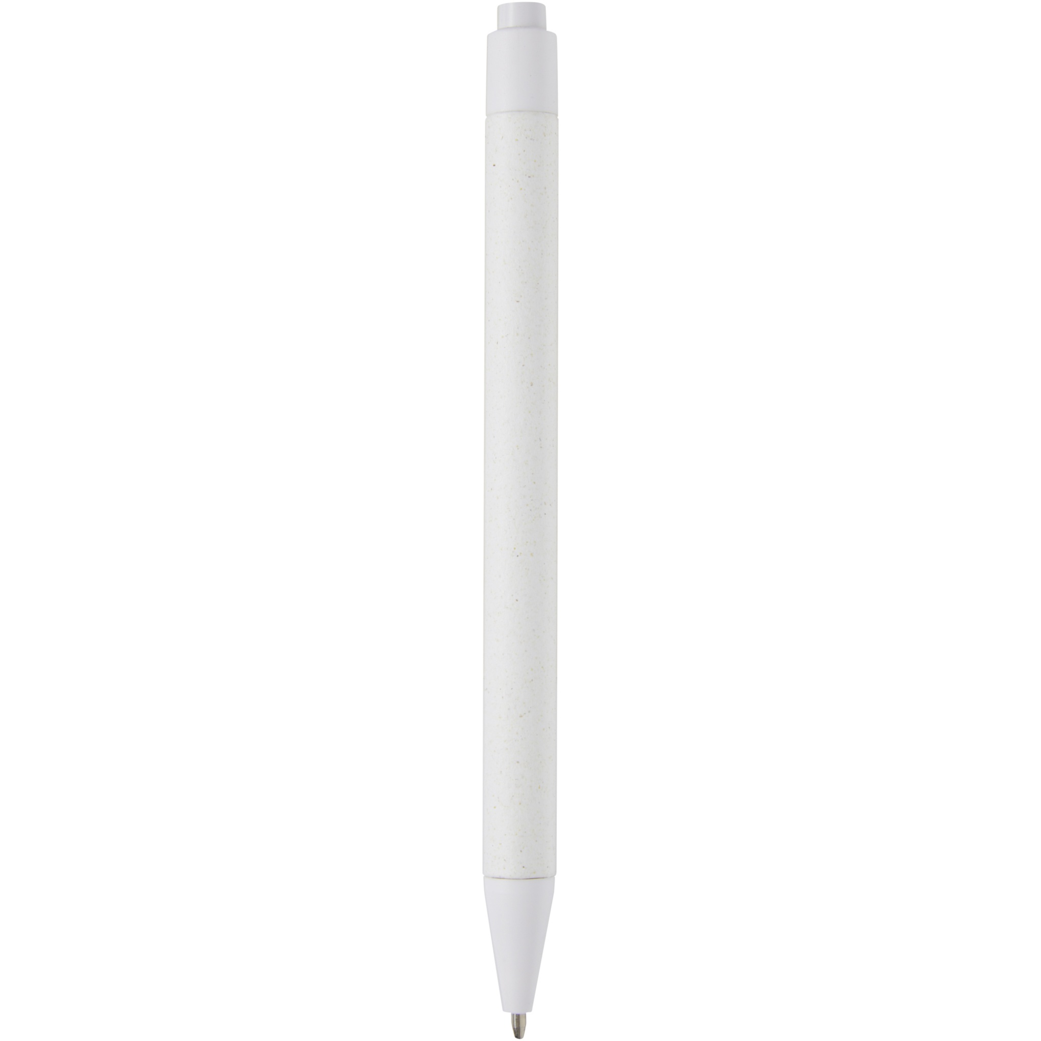 Lightweight ballpoint pen for everyday notetaking. The barrel is made from responsibly sourced crush paper. The brown paper contains the residue from coffee, the green from olives, and the white from corn. The bottom, clip, and tip are made of PLA plastic. Black ink. Writing length: 700 metres.