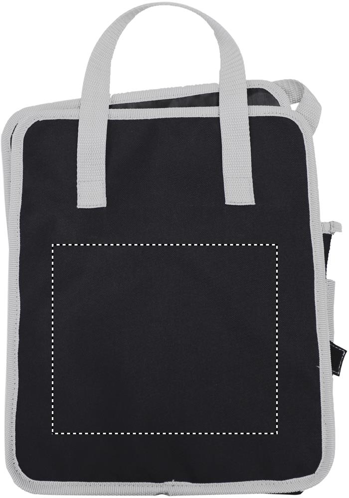 Foldable car organizer in 600D polyester with mesh pocket on side. When not in use, you can fold this up for compact storage. Also, this makes driving safer as it will prevent items from possibly rolling under the drivers feet.