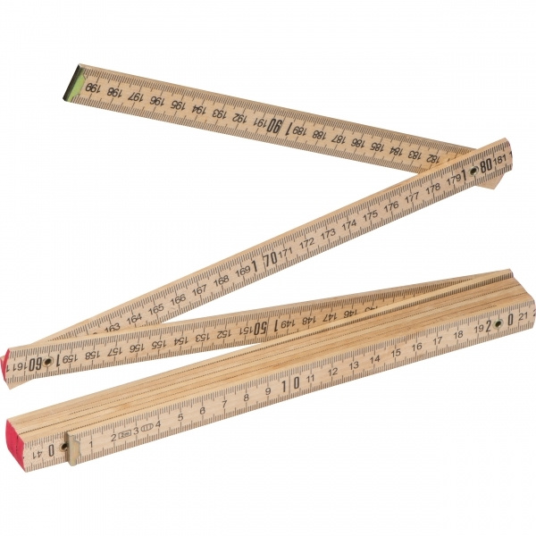 Wooden folding rule with a measuring range of up to 2 meters. Your logo will be printed on the folding rule.Please note that it's a promotional item, not a professional tool.
