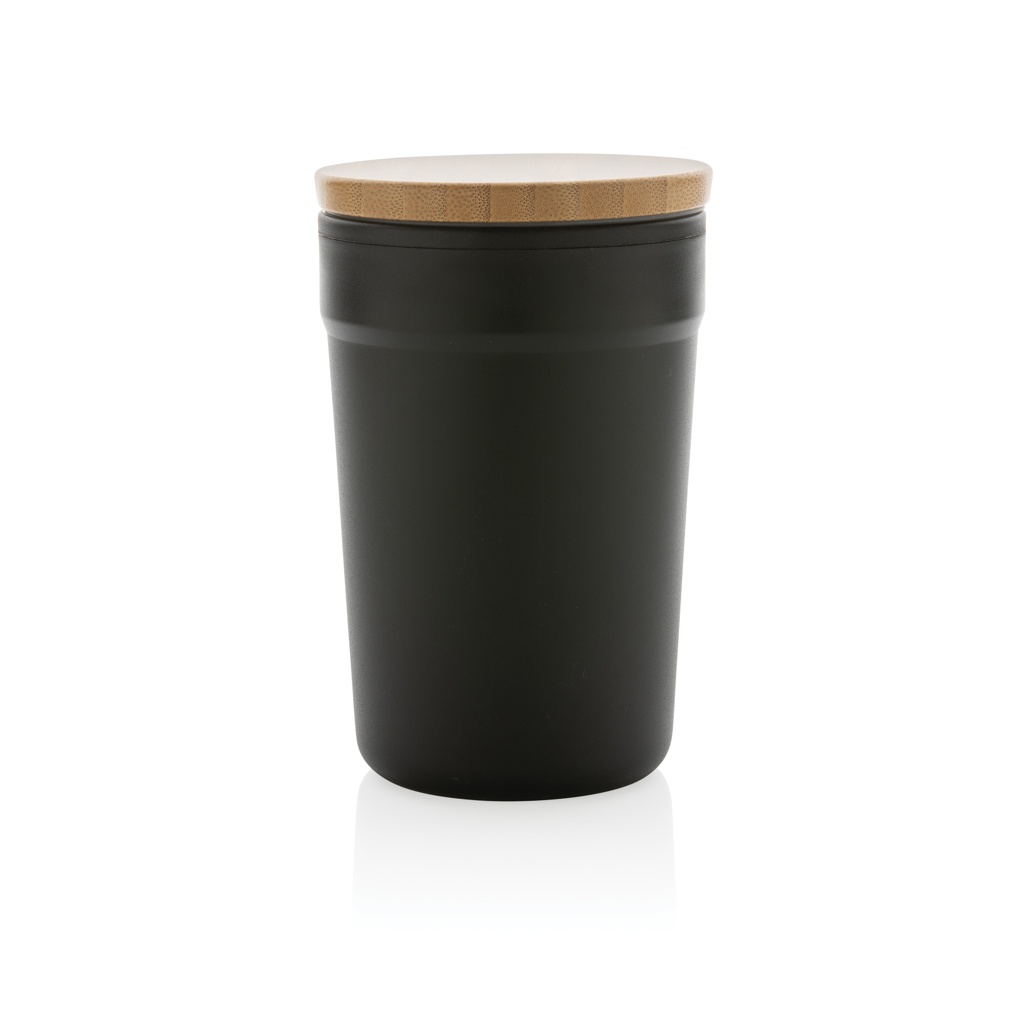 GRS certified recycled PP mug with bamboo lid, black