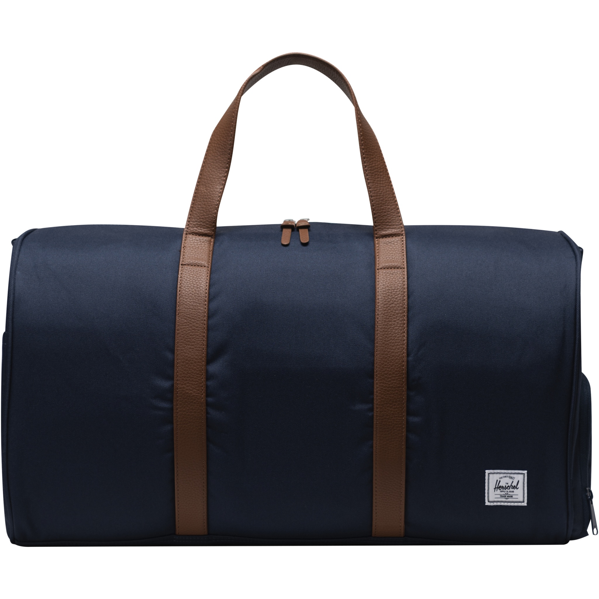 Looking for the ultimate road trip duffel – the Herschel Novel™ duffle bag is yours. This duffel is engineered for rugged durability and intelligent organization, featuring the signature shoe compartment to accommodate that essential extra pair. Expertly crafted from 100% recycled EcoSystem™ fabrics, it fits snugly in overhead bins or trunks, making it the perfect travel companion. The 600D fabric is thoughtfully fashioned from 100% recycled post-consumer water bottles, while the waterproof zippered closure ensures the protection of your precious essentials. This duffle bag is designed with vegan leather handles and a removable smooth webbing shoulder strap, complete with EVA padding, for comfortable carrying. The Herschel Novel™ duffle bag also features an outside sleeve pocket allowing you to easily organize and access your belongings. With a voluminous capacity of 43L, this duffel is the ultimate travel partner for your next adventure.