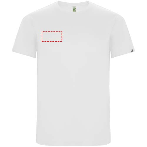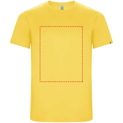 Technical short-sleeve t-shirt in recycled CONTROL-DRY polyester. Crew neck with matching covered seams. ECO logo label on sleeve. Packing in recycled material. Removable ECO label. Packing in recycled material. Technical fabric. The model is 115 cm and is wearing size 5/6.