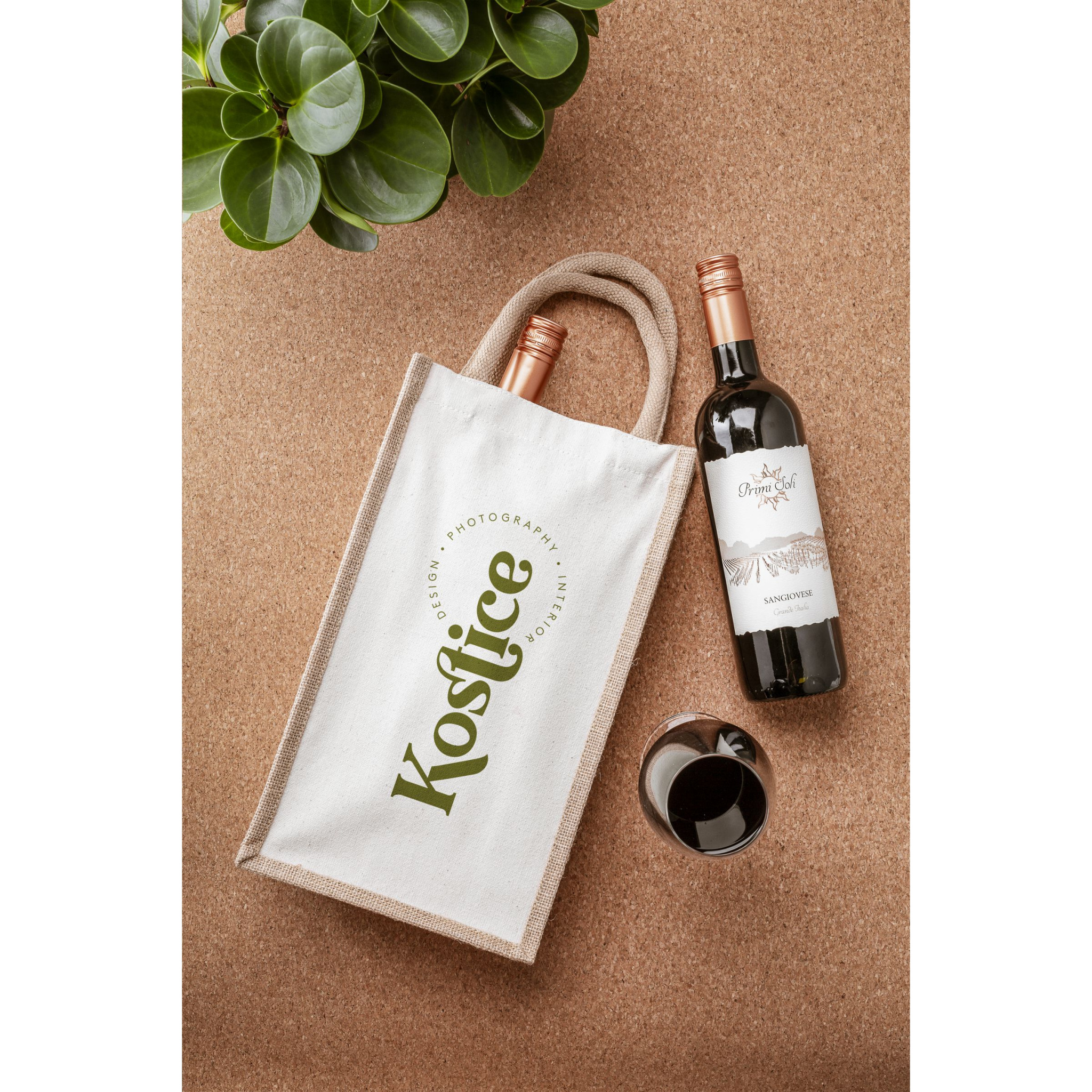 WoW! Sturdy wine bag with handles. This wine gift box is made from jute and organic canvas and can hold two bottles of wine (not included). The bag is divided in to two compartments to prevent any damage to the bottles.