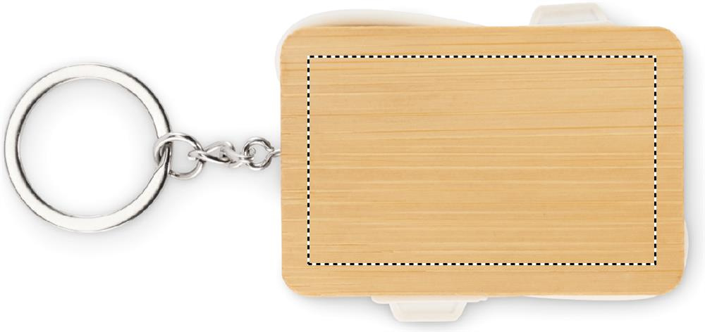 Bamboo cover key ring charging cable. Input: 2-in-1 Type-C and Type-A. Output: Type-C and micro-B (2 in 1 pin).