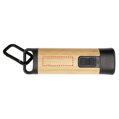 The Kuma torch with carabiner is crafted from certified bamboo and 41% RCS certified recycled plastic, making it a more sustainable choice for exploring the outdoors, tackling DIY projects, or navigating power outages. Featuring a powerful 3W COB light source available in 3 different light modes, the Kuma produces 80 lumens of light with a beam distance of up to 100 meters when fully charged. Equipped with a high-capacity 1200 mAh Li-ion 18650 battery, the torch ensures longevity and reliability, producing 3.5-4.5 hours of continuous illumination on a single charge. The included aluminium carabiner allows for easy attachment to backpacks, belts, or gear, making it a trusty companion for camping or hiking. Since bamboo is a natural product, there may be slight variations in colour and size per item, which may affect the final printing outcome. Delivered with a 30 cm TPE Type-C charging cable, and packed in a STAC gift box from sustainable sources.