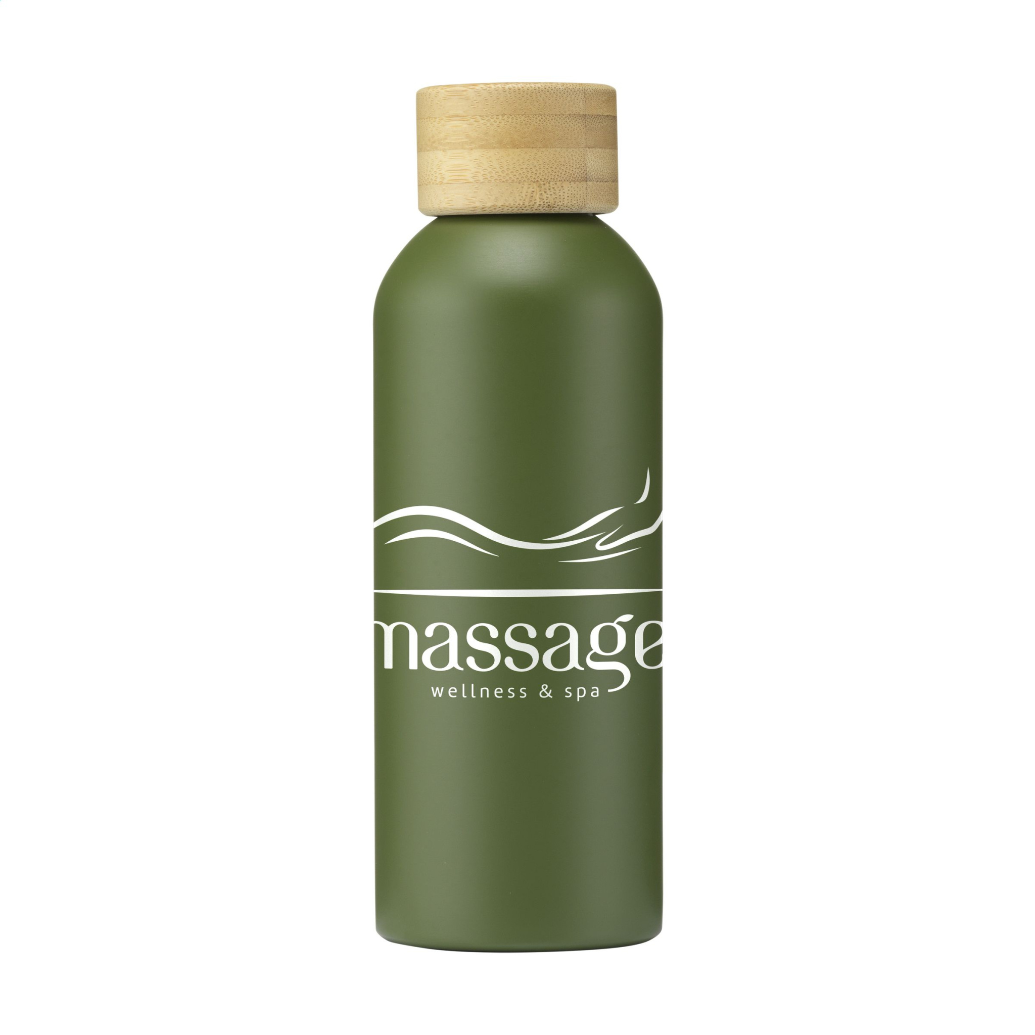 Double-walled, leak proof stainless-steel water bottle / thermos bottle fitted with a bamboo screw cap. Vacuum insulated. Suitable for keeping hot or cold drinks at a consistent temperature. Capacity 500 ml. Each item is supplied in an individual brown cardboard box.