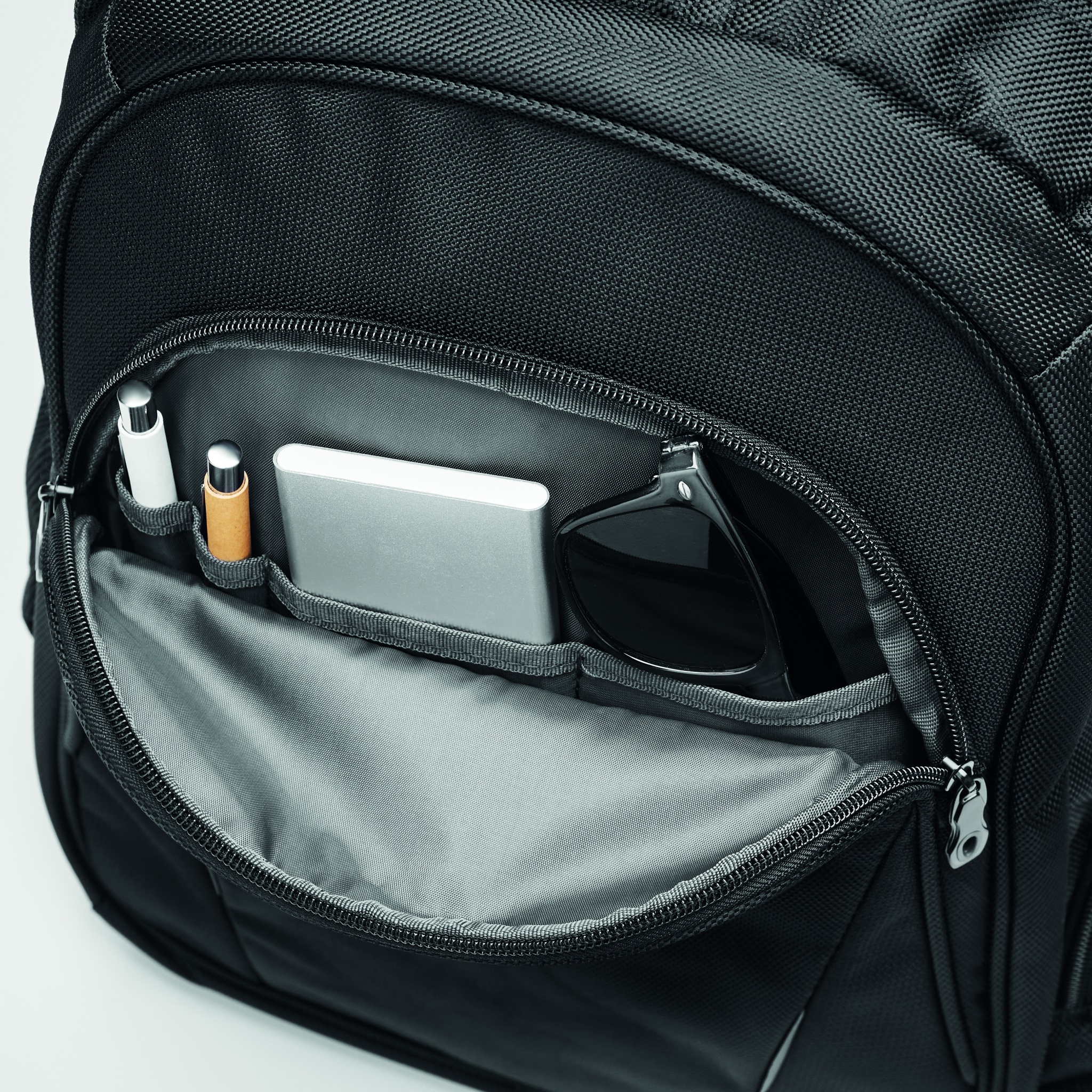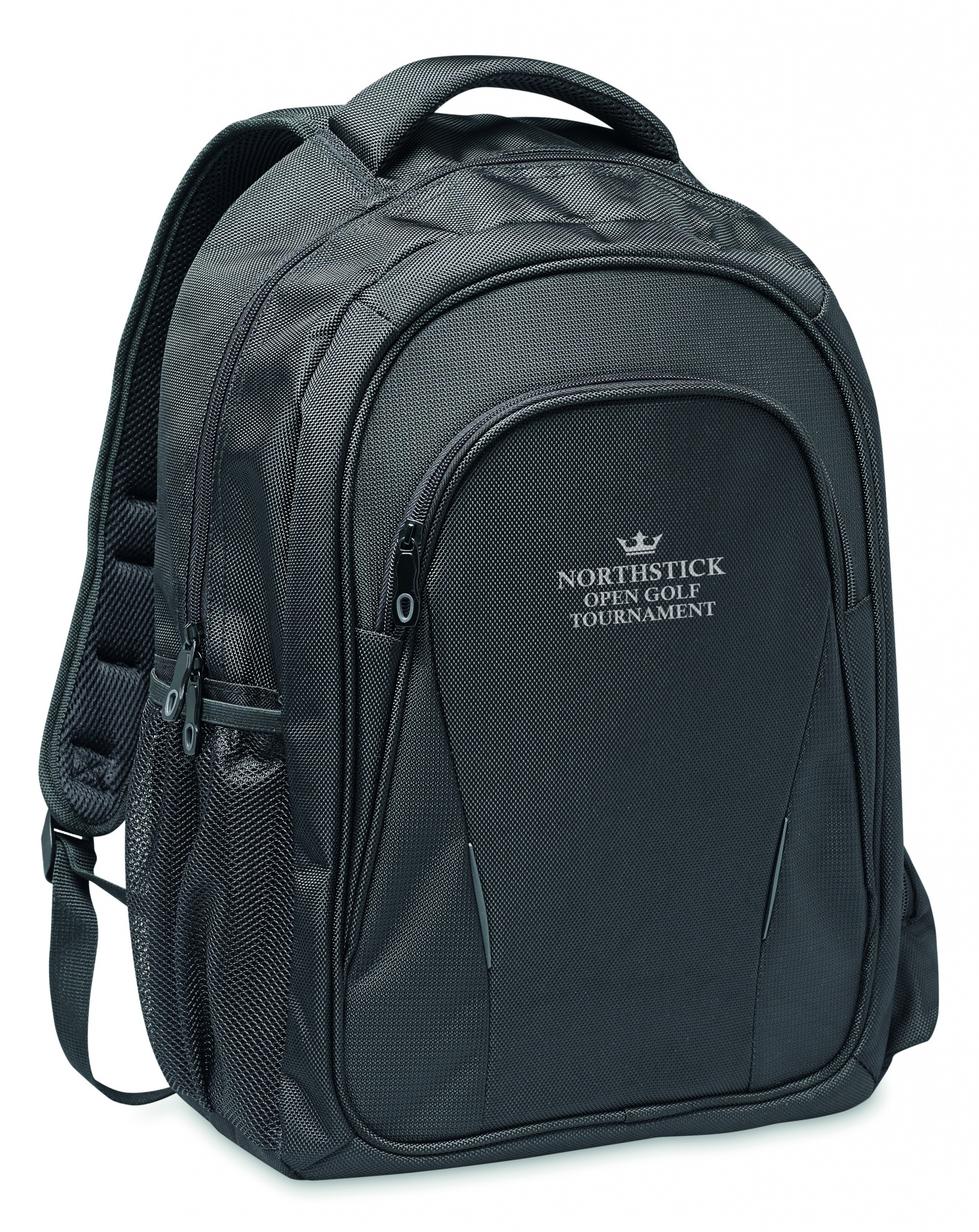 15 inch laptop backpack with compartments. Including several pockets and pen holder. Padded back and shoulder straps. 1680D polyester.