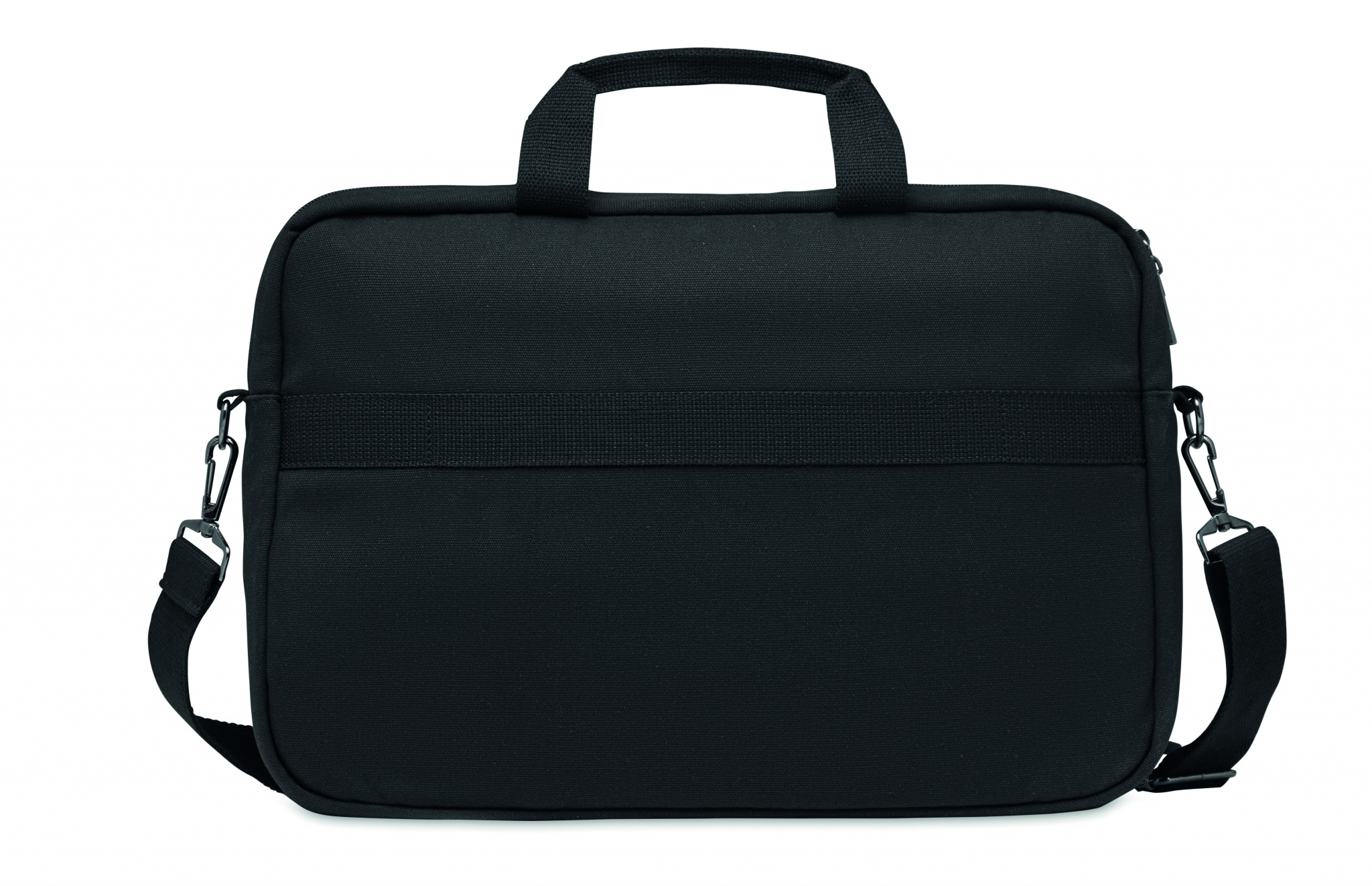15 inch laptop bag in 340 gr/m² washed canvas . Padded detachable and adjustable shoulder strap. Back trolley strap.