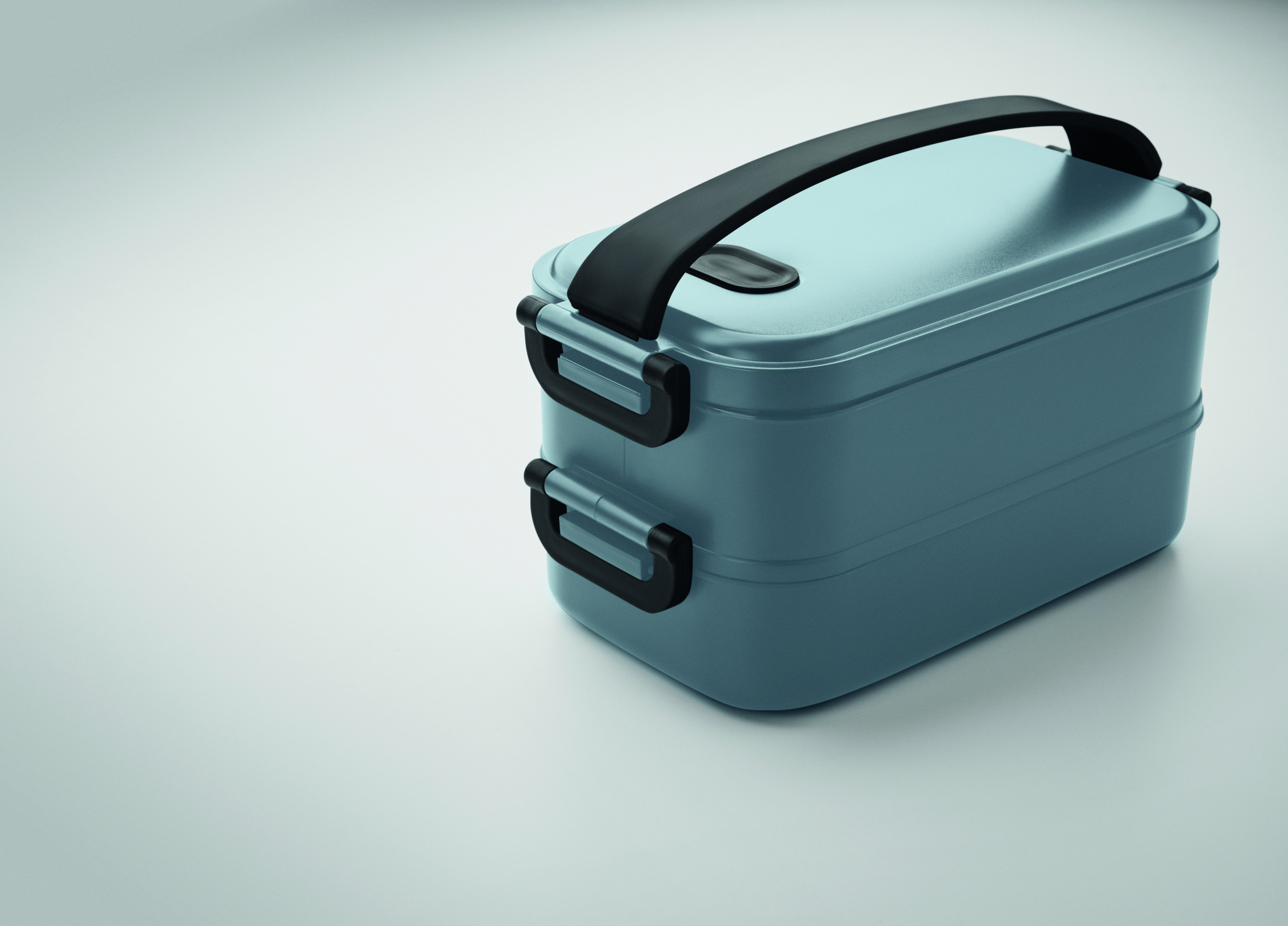 Recycled PP two-tier lunch box with removable divider with side buckles and airtight lid. Capacity: 800 ml (2x).