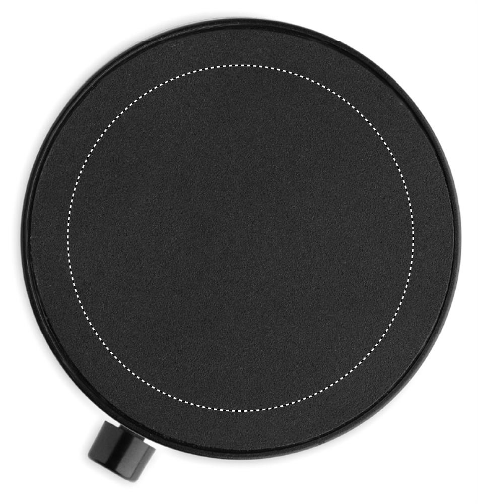 Magnetic phone holder in ABS. Vacuum suction hold. Compatible with iPhone® 12 and newer. Including additional magnetic metal ring to support charging of other non-magnetic wireless chargeable phones.