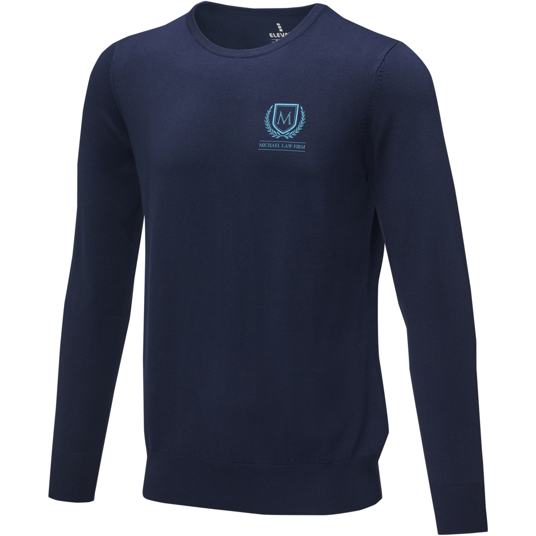 The Merrit men's crewneck pullover – a fusion of timeless style and comfort. Its classic crew neck is complemented by flat knit rib details on the collar, cuffs, and bottom hem, providing a sophisticated charm suitable for any occasion. Made from viscose and nylon blend in a 12-gauge flat knit, it offers a blend of softness, durability, and a lightweight feel. Elevate your wardrobe with the versatile Merrit pullover that embodies elegance and quality.