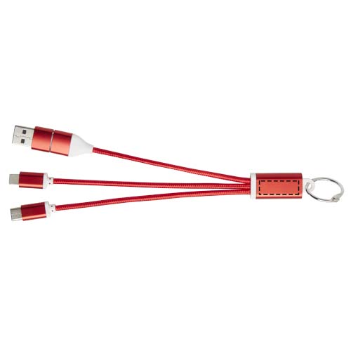 Metal 4-in-1 recycled aluminium charging cable with keychain, Red