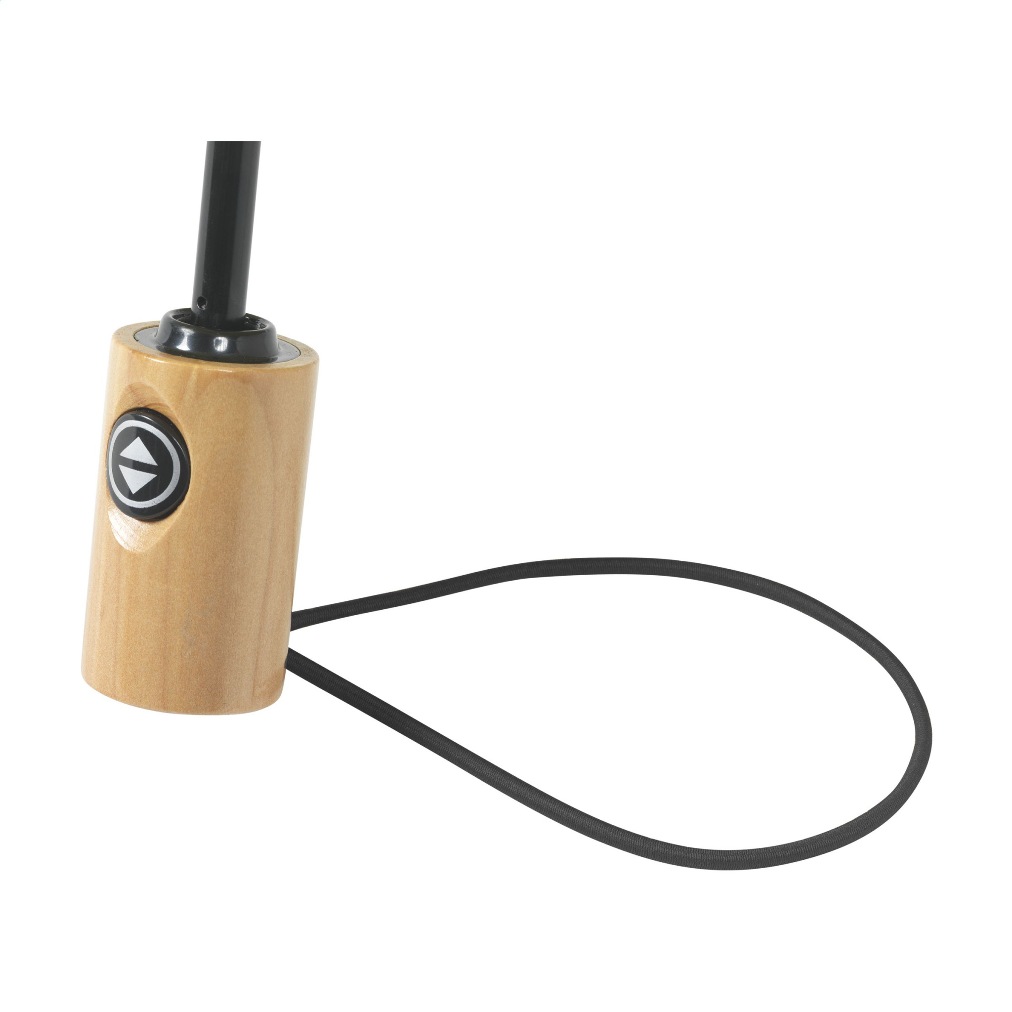 WoW! Folding umbrella with automatic opening and closing mechanism. Supplied with an RPET 190T pongee polyester cover. This umbrella also has a stainless-steel shaft and frame wooden handle, elastic carrying loop and Velcro closure. Length when folded down: 28 cm. RCS-certified. Total recycled material: 16%.