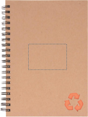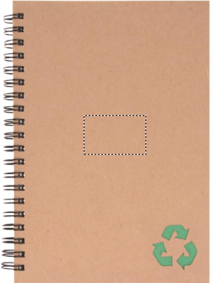 Recycled carton cover notebook. Twin-wire. 140 lined mineral paper pages (70 sheets). Mineral paper is made out of calcium carbonate and HDPE (polyethylene resin) used as a binder. It is waterproof and resistant to grease.