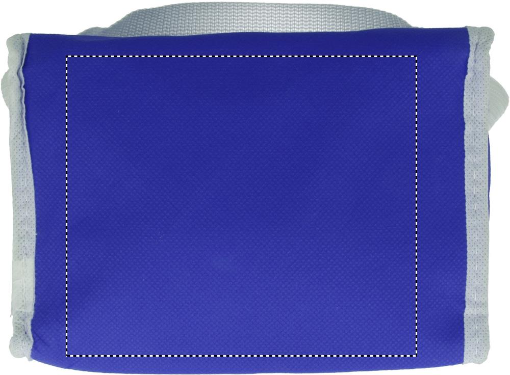 Cooler bag for 6 cans. Outside in nonwoven with white trimmings. 80 gr/m². Isolation material: foam laminated with aluminium foil. Capacity 3L.