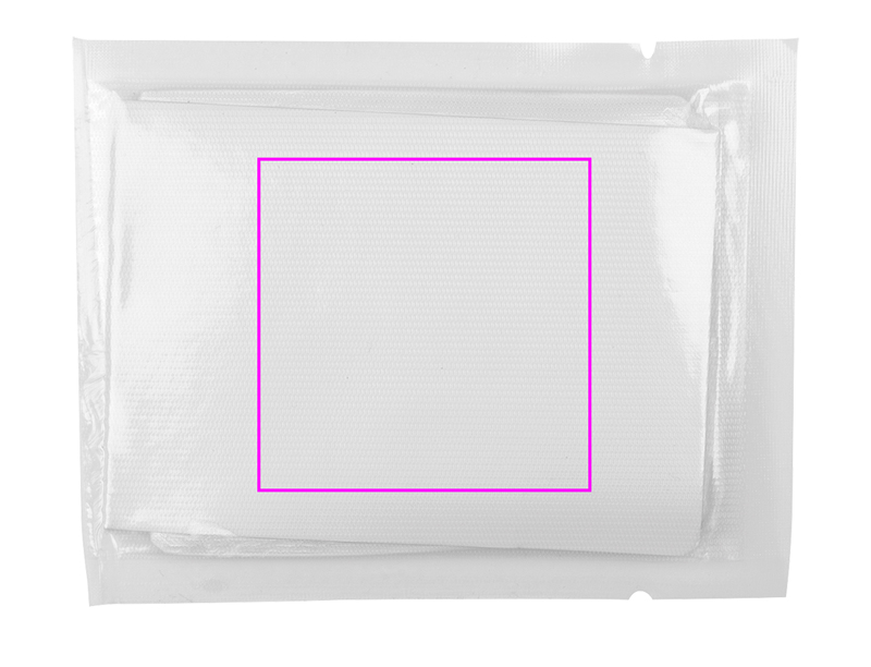 Rain poncho folded in a small size packaging (8,5 x 6 cm). We print your logo on a label attached to packaging. Back of unfolded coat - 113 x 78 cm.