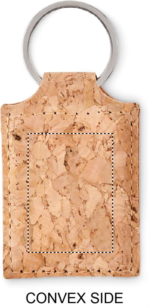 Rectangular cork key ring. Cork is 100% natural material. Due to its structural nature and surface porosity the final print result per item may have deviations.