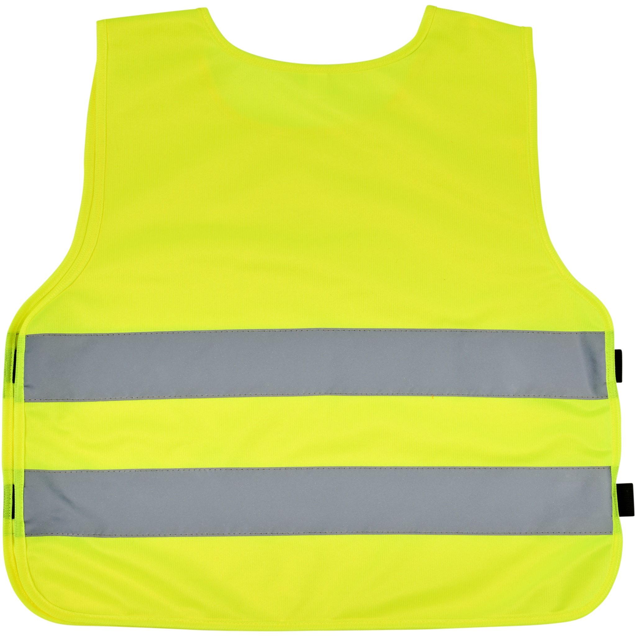 High visibility vest in XS size suitable for kids age 7-12 years with a height between 104-121 cm. Large decoration area on the front and on the back of the vest. On the shoulder and the bottom elastic bands there are hook & loop closures, that offers extra safety and makes the vest easy to put on. The elastic bands on the other side makes it stretchable allowing easy wearing on thick coats. The vest is tested and certified under regularions EN 1150:1999. It also adheres to the PPE guidelines on application of Regulation (EU) 2016/425 Personal Protective Equipment Category II.