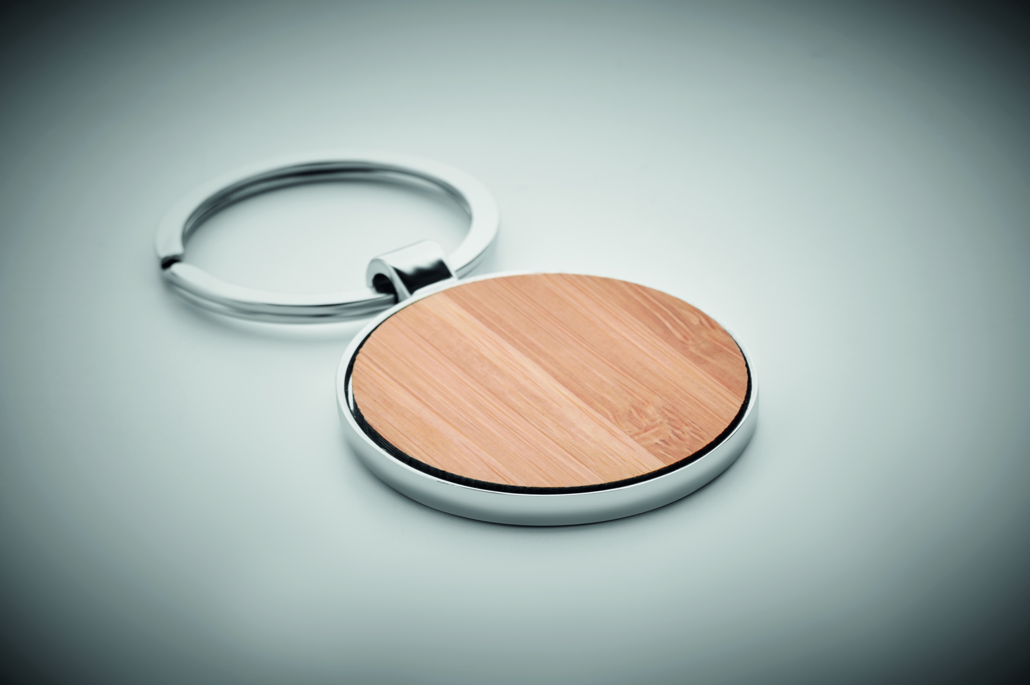 Logo trade promotional gifts picture of: Round key ring metal bamboo Dobele