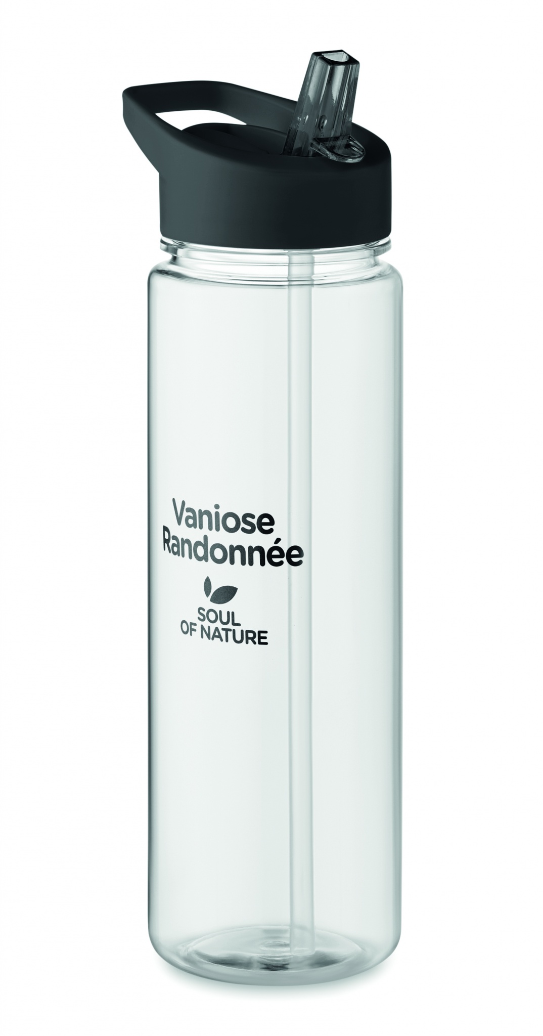 Drinking bottle in RPET and PP flip-top lid with straw. Capacity: 650ml. Not suitable for carbonated drinks.