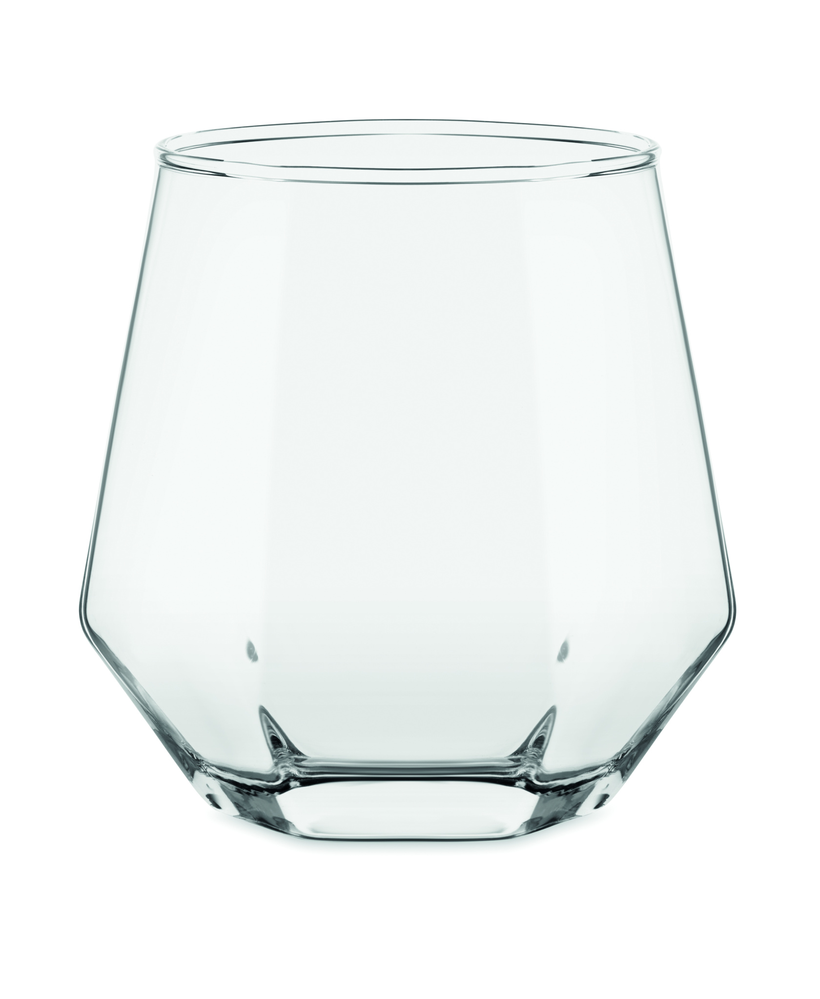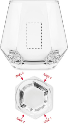 Geometric diamond shaped tilted short drink glass. For whisky or other liquors. Capacity: 300ml.